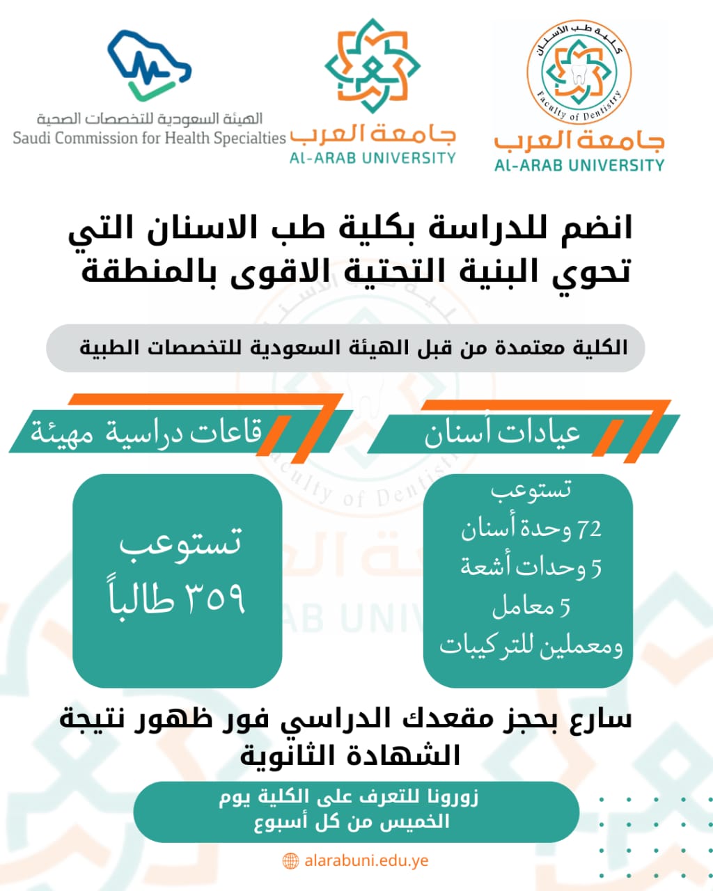 ضمن فعاليات كلية طب الأسنان بجامعة العرب في إطار خدمة المجتمع والمشاركة المجتمعيةاستقبلت عيادات الكلية مجموعة من أطفال دار الفجر للأيتام.