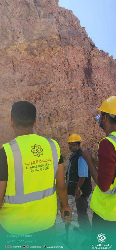 قام طلاب قسم هندسة التعدين المستوى الثاني بكلية الهندسة وتقنية المعلومات بجامعة العرب برحلة علمية جيولوجية إلى الطريق القبلية (طريق المكلا دوعن)تعرفوا على التكوينات الجيولوجية والتتابع الجيولوجي والرسوبيات المتواجدة بالمنطقة.