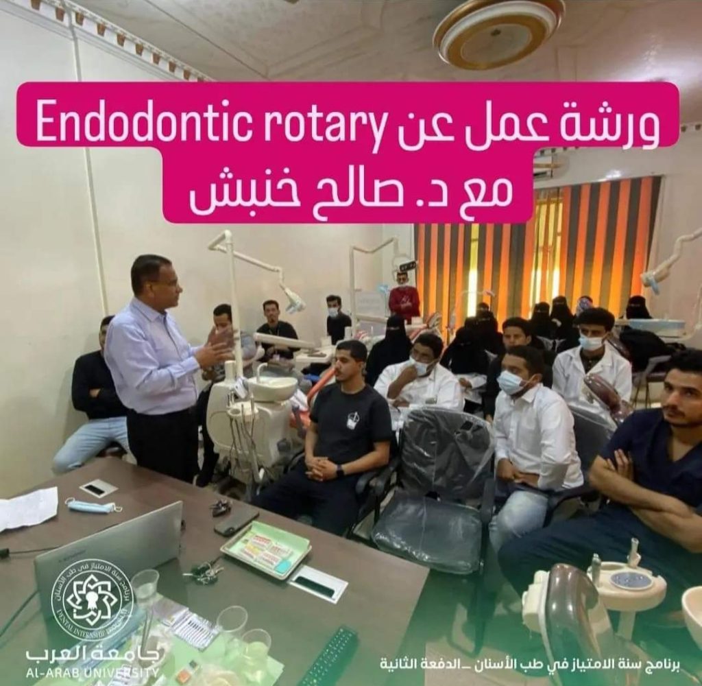 افتتح عميد كلية طب الأسنان بالجامعة واستشاري علاج عصب الأسنان الدكتور صالح خنبش لقاءات الإمتياز بورشة عمل في علاج عصب الأسنان وذلك بشرح عملي وبث مباشر وذلك ضمن محور التعليم المستمر برنامج لقاءات الامتياز للعام الثاني عبر الجزء الأول من ورشة عمل عن علاج العصب بطريقة الروتاري rotary endodontic.حيث حضر جميع أطباء الإمتياز الورشة التي تميزت بنقل مباشر عبر شاشة وحدة التدريب كما سيتم في الجزء الثاني التطبيق العملي على مريض ومعرفة الصعوبات والأخطاء التي يواجهها الأطباء وطريقة التغلب عليها.