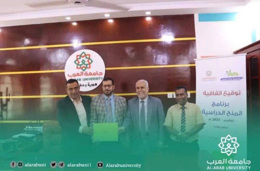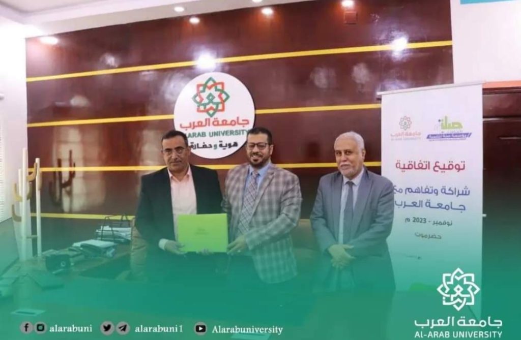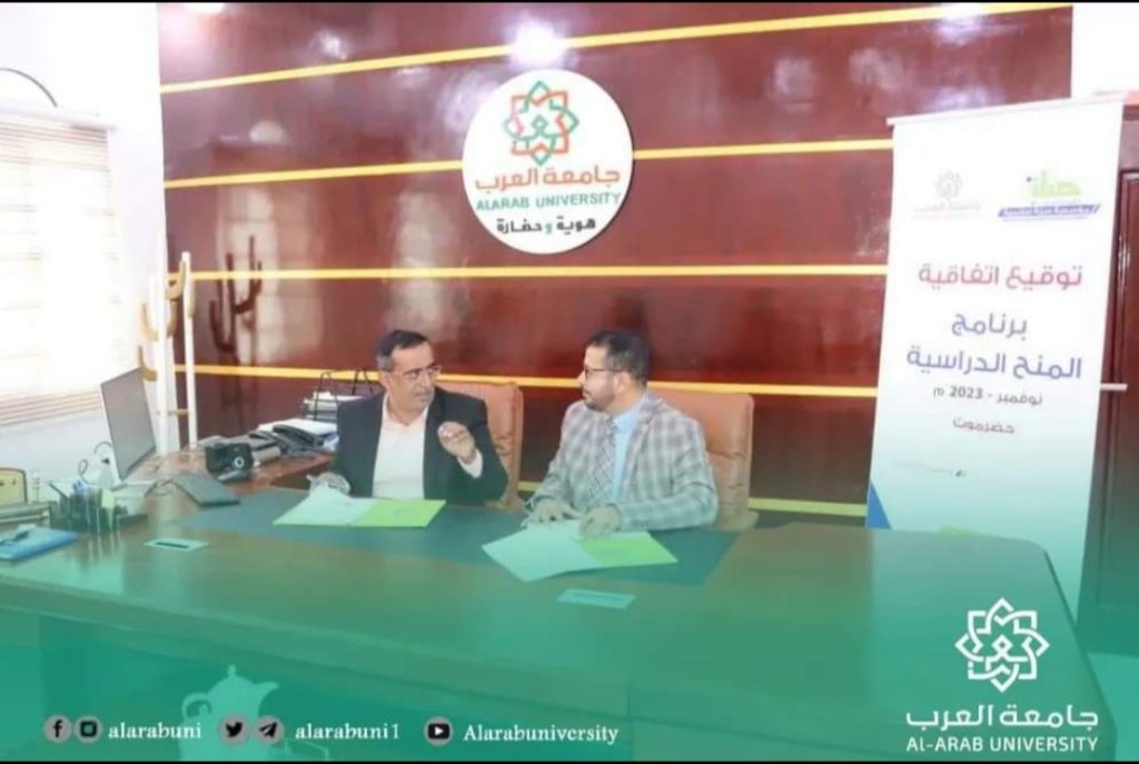 وقعت اليوم بديوان رئاسة جامعة العرب بمدينة المكلا اتفاقية تعاون وشراكة وتمويل منح دراسية بين الجامعة ومؤسسة صلة للتنمية.وقع الاتفاقية عن الجامعة الدكتور عبود محمد العبل رئيس الجامعة وعن مؤسسة صلة للتنمية الاستاذ علي حسن باشماخ المدير التنفيذي للمؤسسة بحضور نائب رئيس جامعة العرب عميد كلية الطب والعلوم الصحية الدكتور علي باطرفي ومدير البرامج التعليمية بمؤسسة صلة الاستاذ سالم بامسلم .وبموجب التوقيع على الاتفاقيتين التي تنص على تبادل الخبرات والفرص التعليمية والاستشارات العلمية والفنية في مجال البحث العلمي بما يحقق اهداف الطرفين بأعلى مستوى من التميز والاداء بالاضافة الى اقتراح الافكار والمبادرات والفعاليات.وعقب التوقيع أكد الدكتور العبل أهمية الاتفاقية بين جامعة العرب ومؤسسة صلة وهي خطوة و لبنة أولى لمزيد من التعاون والشراكة في المستقبل. مشيداً بجهود واسهامات المؤسسة من خلال دعمها وتنفيذها للمشاريع التي تلامس الاحتياج المجتمعي في مجالات التعليم والصحة وغيرها من المشاريع الانسانية.من جانبه أشاد المدير التنفيذي لمؤسسة صلة للتنمية بجامعة العرب بما حققته الجامعة من نجاحات اكاديمية وفتحها لعدد من التخصصات النادرة المواكبة لاحتياجات سوق العمل والتي تسهم في التنمية.