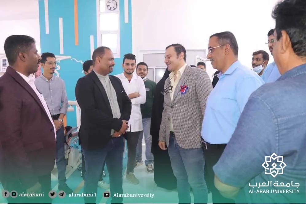 واستمع باضاوي والجمحي من عمادة الكلية والمشرفين على العيادات الى شرح عن الكلية والعيادات التي تضمها والخدمات التي يقدمها المركز الاستشاري للأسنان التابع للكلية بمستشفى العرب من خلال تدريب وتأهيل الطلاب لممارسة طب الأسنان بشكل احترافي والحفاظ على صحة الفم والأسنان والتشخيص الجيد لحالات الاسنان والتوعية بما يسهم في الوقاية المختلفة من المشاكل السنية. مؤكدين ان كلية طب الأسنان بجامعة العرب تحرص على توفير بيئة تعليمية متقدمة ومجهزة بأحدث التقنيات والمعدات الطبية لتمكين الطلاب من اكتساب المعرفة العلمية والمهارات العملية اللازمة لممارسة طب الأسنان بنجاح والتعريف ببرنامج سنة الامتياز والذي تم افتتاحه العام الماضي.