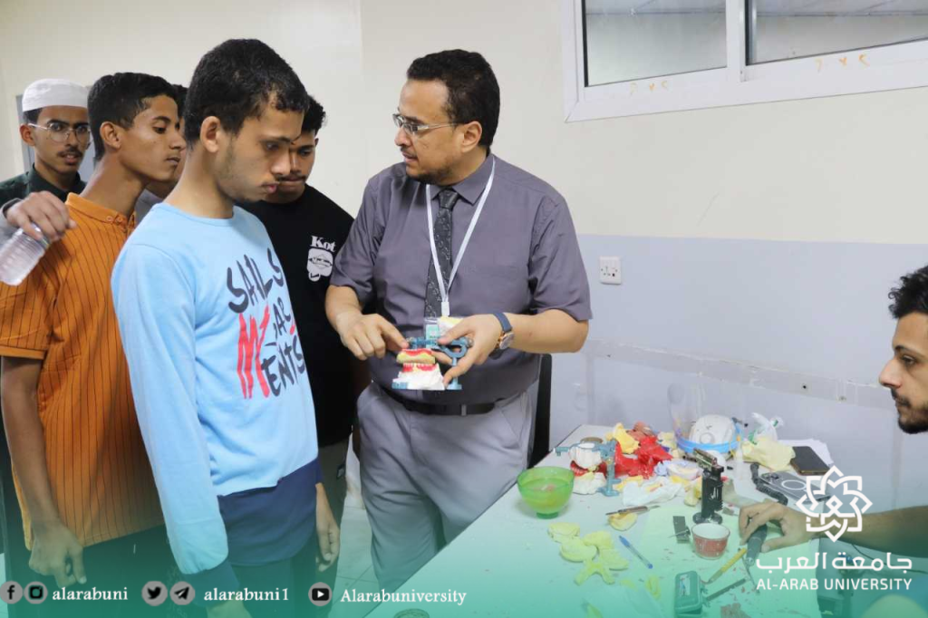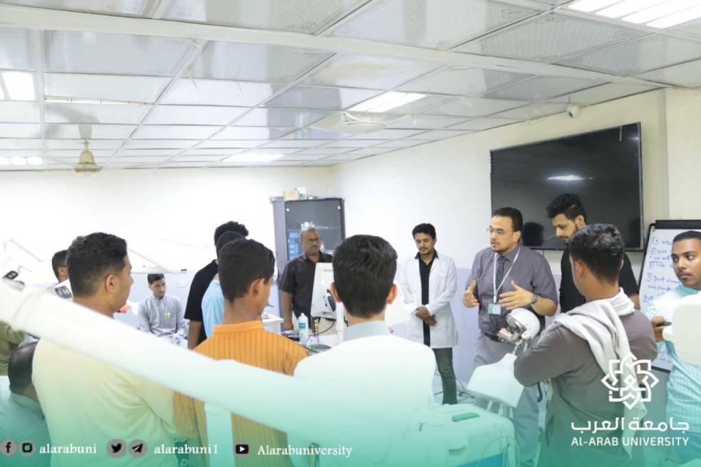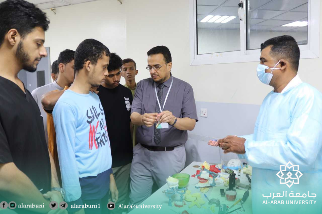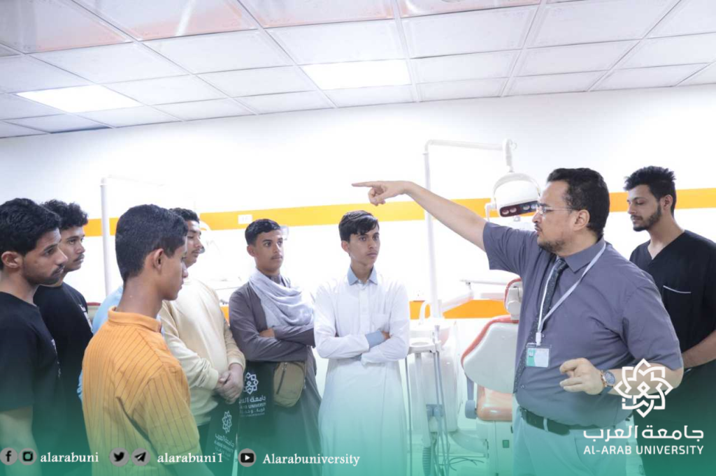 قام طلاب ومعلمي مدرسة النهضة الثانوية بسيئون بزيارة إلى كلية طب الاسنان بجامعة العرب حيث رحب الدكتور صالح خنبش عميد الكلية بالضيوف وتم اصطحابهم في جولة تعريفية بالقاعات والعيادات والمعامل وتقديم هدايا لهم وبروشورات تحتوي على تعريف بالكلية ونظام الدراسة بها.