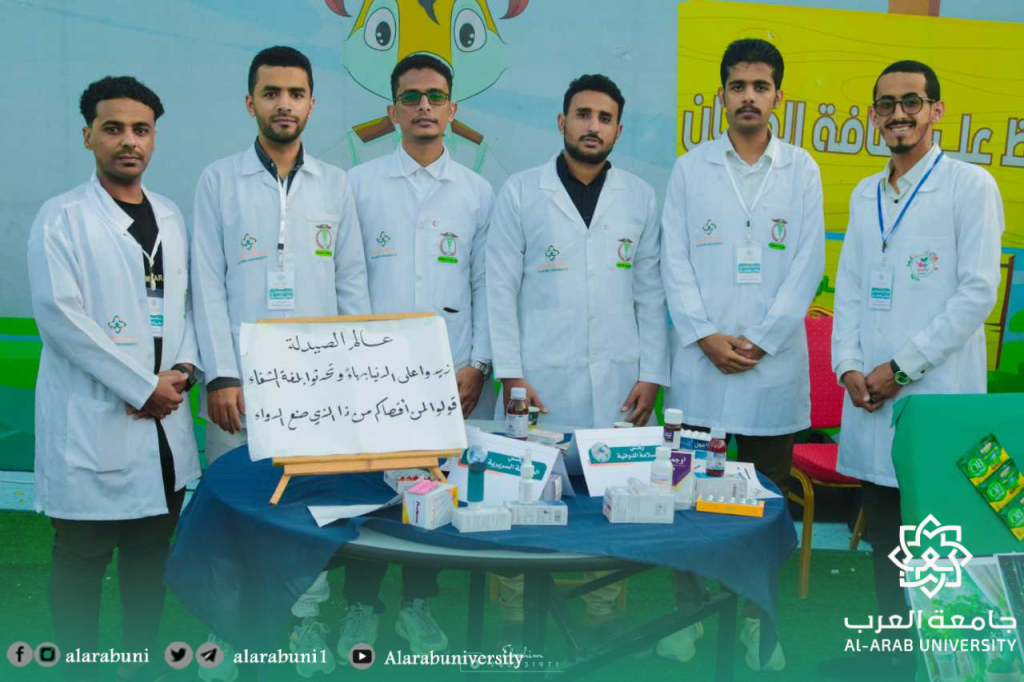 في إطار حرص جامعة العرب على نشر التوعية الصحية بين أفراد المجتمع، نظم طلاب كلية الطب والعلوم الصحية – (تخصص صيدلة) ، وبالتعاون مع منتزه مكلا بارك، فعالية توعوية متميزة تحت شعار “معًا نحو وعي دوائي أفضل”، وذلك يوم الجمعة الموافق 25 أبريل 2025.هدفت الفعالية إلى تعزيز الوعي الدوائي لدى الجمهور، من خلال تقديم معلومات وإرشادات صحية بأسلوب مبسط وتفاعلي. وقد شملت الفعالية عدة أركان تعليمية وتوعوية متنوعة، أبرزها:ركن السلامة الدوائية: تم خلاله توعية الزوار بطرق استخدام الأدوية بشكل آمن وتفادي الأخطاء الدوائية.ركن التثقيف الدوائي: عرض معلومات دوائية تثقيفية لتعزيز الفهم العام للأدوية.ركن الصيدلة السريرية: وفر استشارات صيدلانية مباشرة للزوار حول استخدام الأدوية ومتابعة العلاج.ركن التركيبات الصيدلانية: تم فيه شرح وتحضير بعض التركيبات الصيدلانية البسيطة أمام الزوار.ركن الأعشاب الطبية: استعرض فوائد الأعشاب الطبية وكيفية استخدامها بطريقة صحيحة وآمنة.ركن التفاعلات الكيميائية: شرح آلية حدوث التفاعلات الكيميائية، بالإضافة إلى تقديم أمثلة حية لعدد من التفاعلات الكيميائية الشائعة.وقد تميزت الفعالية بحضور جماهيري لافت وتفاعل مميز من الحاضرين، مما ساهم في تحقيق أهداف الفعالية ونشر الثقافة الدوائية بطريقة فعالة وجذابة.ختامًا، تعكس هذه الفعالية جهود طلاب كلية الصيدلة بجامعة العرب في خدمة المجتمع، وتعزيز دورهم في التوعية الصحية، ضمن رؤية الجامعة في تحقيق شراكة مجتمعية فاعلة.