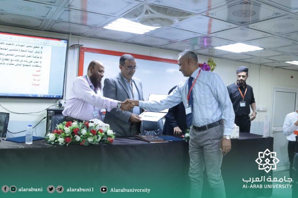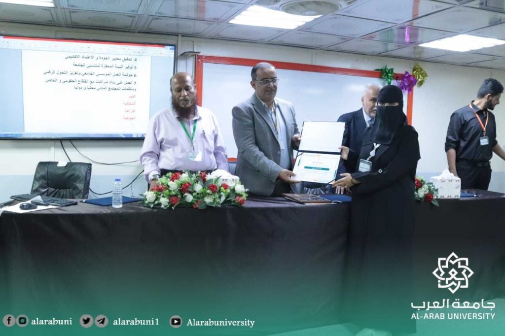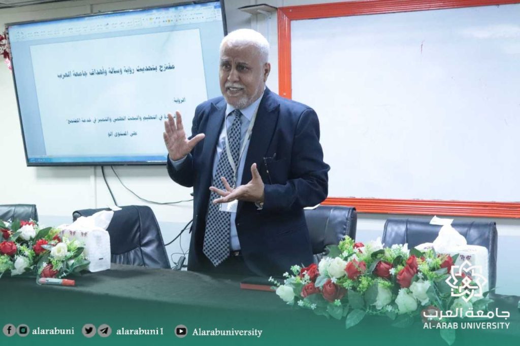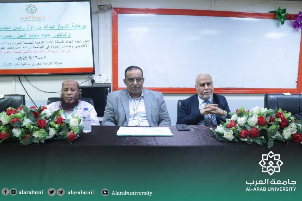 دشّنت جامعة العرب صباح اليوم أولى فعالياتها المتعلقة بإعداد الخطة الاستراتيجية للفترة 2025 – 2030، وذلك من خلال تنظيم ورشة عمل لمراجعة وتحديث الرؤية، والرسالة، والأهداف، والقيم المؤسسية للجامعة، والتي عُقدت في القاعة الكبرى بكلية طب الأسنان.