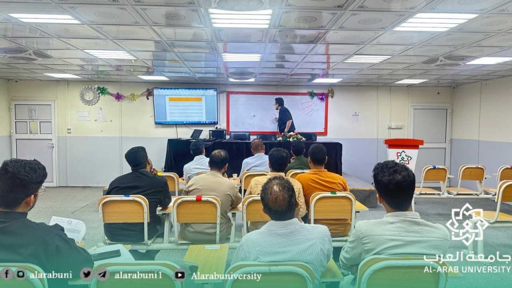 نظّم مركز التطوير الأكاديمي وضمان الجودة ورشة عمل تدريبية بعنوان “تقرير المقررات وفق القالب الجديد”، قدّمها الدكتور أحمد السعيد، عضو المركز، وذلك في إطار جهود المركز لتعزيز مفاهيم الجودة الأكاديمية وتفعيل دورها في كليات الجامعة.
