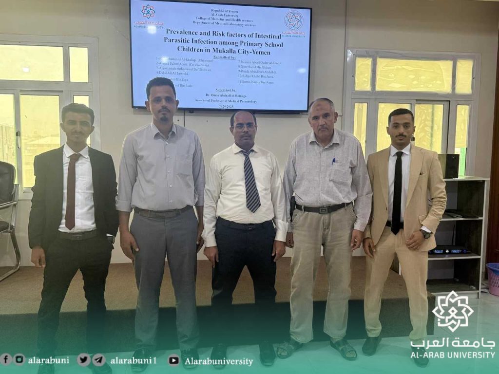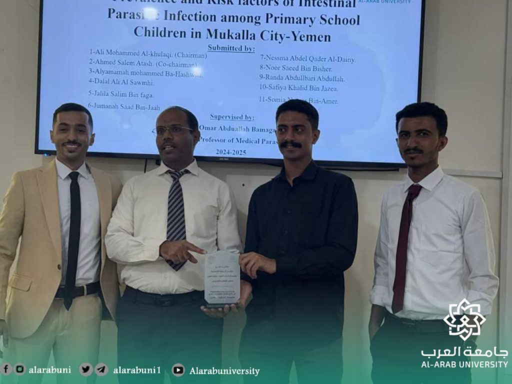 خلال المناقشة، استعرض الطلاب ملخصات أبحاثهم ونتائج دراساتهم التي تناولت أبرز العوامل المصاحبة لانتشار عدوى الطفيليات المعوية بين أطفال المدارس في مدينة المكلا. وقد تميزت المناقشات بتفاعل علمي مثمر، حيث طرحت اللجان العلمية جملة من الأسئلة والنقاشات البناءة، وقدمت ملاحظات قيّمة تسهم في تطوير مستوى الأبحاث وتحفيز الطلاب على التميز.