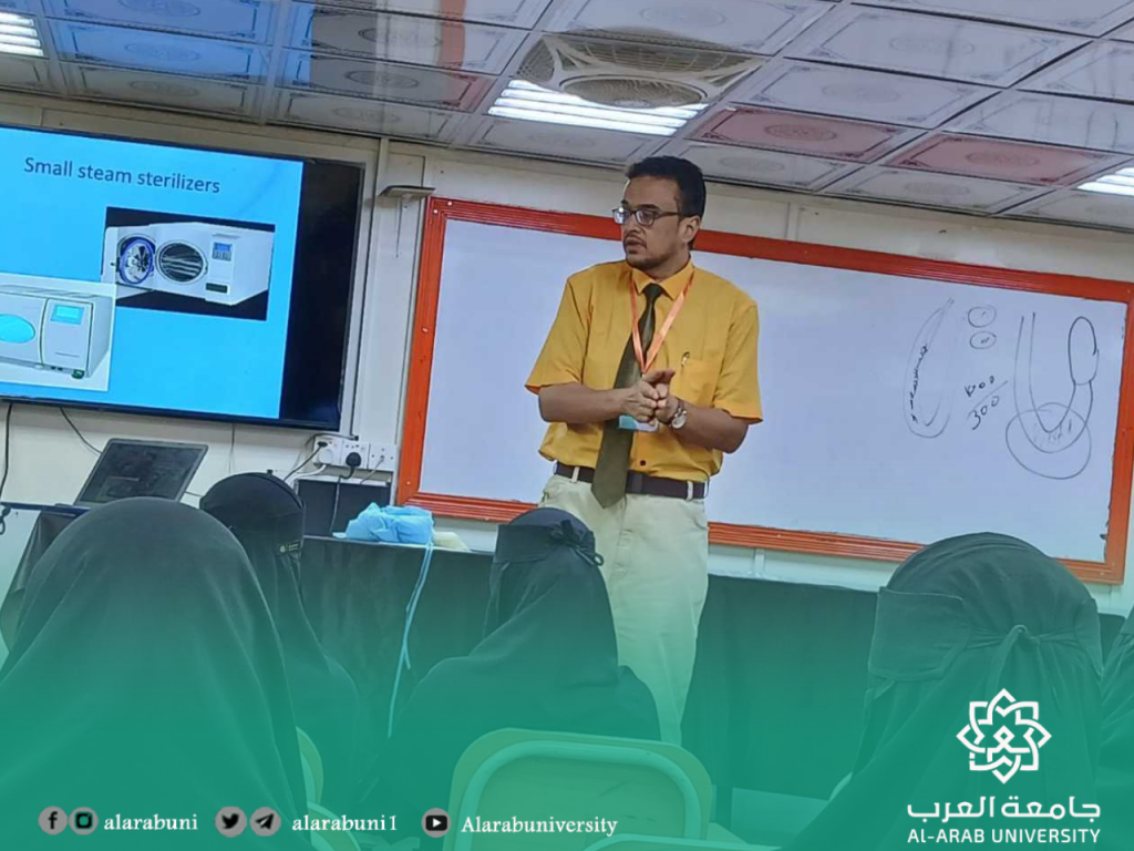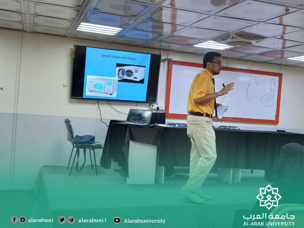 كلية طب الأسنان تنظم ورشة عمل حول أساسيات مكافحة العدوى برعاية وتوجيهات كريمة من عميد كلية طب الأسنان الدكتور صالح خنبش، نظّمت كلية طب الأسنان ورشة عمل تدريبية متخصصة حول مكافحة العدوى، استهدفت كادر التمريض والعاملات بعيادات الأسنان في مختلف أقسام الكلية.هدفت الورشة إلى تعزيز وعي الكادر بأهمية الالتزام الإجراءات الوقائية، حيث تناولت محاورها أساسيات مكافحة العدوى، وآليات تنفيذها، ودور كل فرد في الوقاية والحد من انتشار العدوى داخل البيئة السريرية والتعليمية.وقد تخلل الورشة نقاش مفتوح أتاح للمشاركين فرصة طرح الأسئلة ومناقشة التحديات الواقعية التي تواجههم، ما أضفى طابعًا تفاعليًا عزز من فاعلية التدريب.أدار الورشة عضو هيئة التدريس بالكلية الدكتور أحمد السعيد، الذي قدّم محتوى علميًا وتطبيقيًا مكثفًا، مع التركيز على أهمية الالتزام الإجراءات القياسية وتطبيق بروتوكولات مكافحة العدوى في بيئة العمل السني.تأتي هذه الفعالية ضمن سلسلة من الأنشطة والبرامج التدريبية التي تحرص الكلية من خلال لجنة التعليم الطبي المستمر على تنفيذها لتعزيز بيئة آمنة وصحية بما يتماشى مع المعايير الأكاديمية والمهنية .