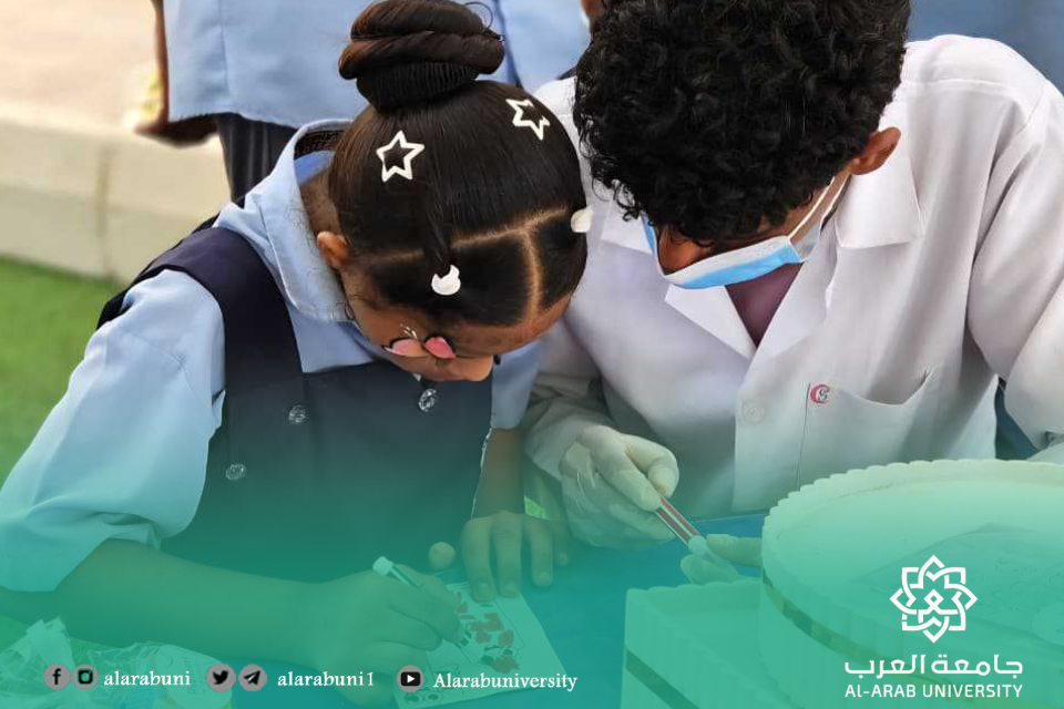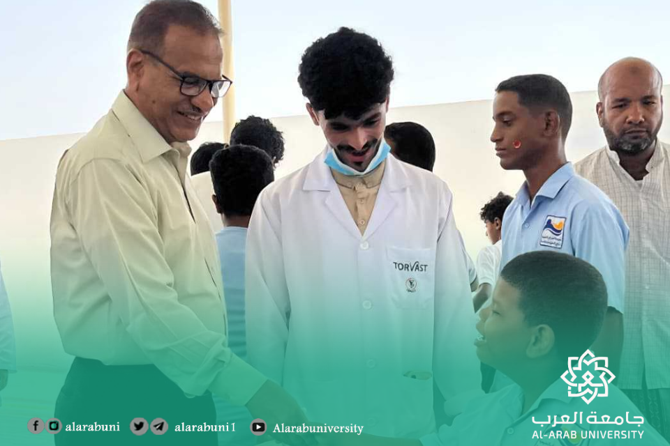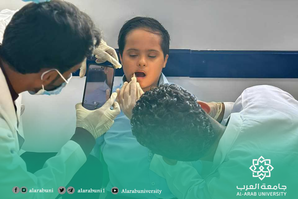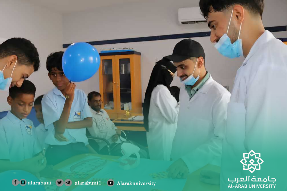 نفذت لجنة خدمة المجتمع بكلية طب الأسنان – جامعة العرب، صباح يوم الخميس الموافق 25 سبتمبر 2025م، نزولًا ميدانيًا إلى مدرسة المزيني التعليمية لذوي الاحتياجات الخاصة بمشاركة طلاب المستوى الثالث.تضمن النزول تقديم برامج توعوية حول أهمية العناية بصحة الفم والأسنان وطرق الوقاية من الأمراض، إلى جانب إجراء فحوصات أولية للطلاب المستفيدين.وحظيت الفعالية بتفاعل كبير من الطلاب وإشادة من إدارة المدرسة، التي عبّرت عن شكرها لجامعة العرب على جهودها في خدمة المجتمع، مؤكدين أهمية مثل هذه المبادرات الإنسانية والتعليمية.