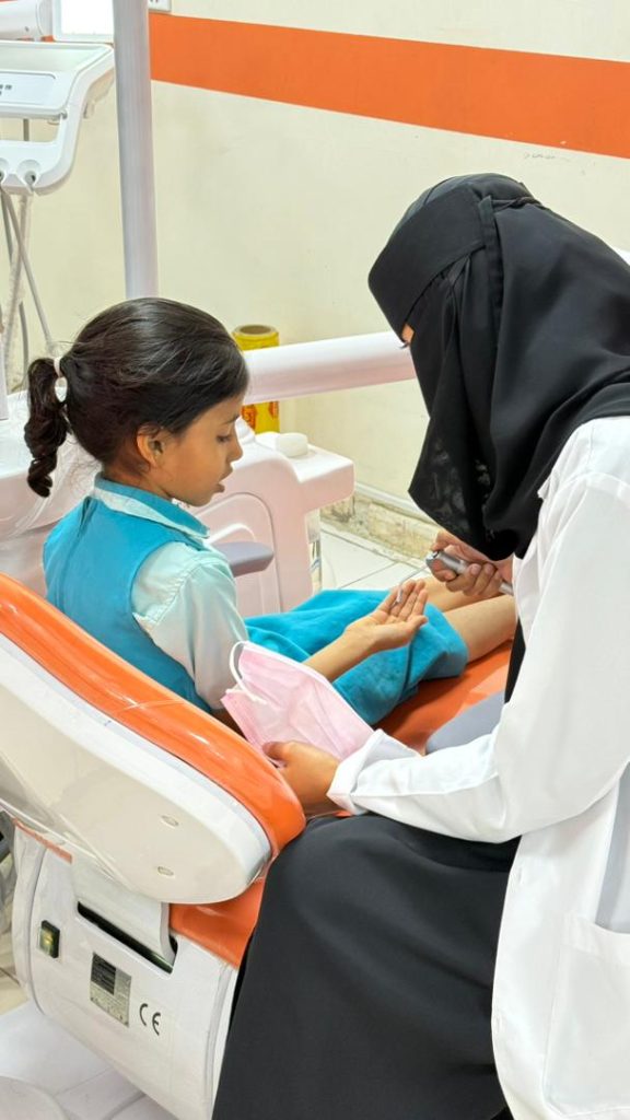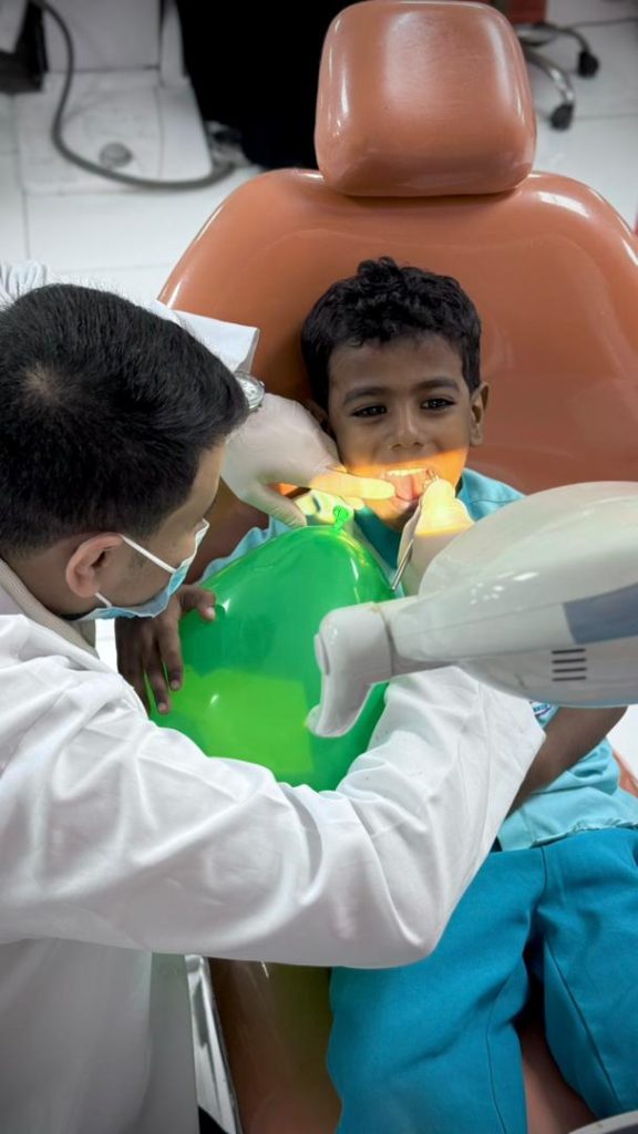 وكان في استقبال الأطفال أعضاء اللجنة الإعلامية، حيث جرى الترحيب بهم وتقديم نبذة تعريفية مبسطة عن عيادات الكلية ودورها في العناية بصحة الفم والأسنان. عقب ذلك، تم إجراء فحص أسنان للأطفال من قِبل الكادر المختص، مع توزيع هدايا رمزية أدخلت البهجة والسرور إلى نفوسهم.