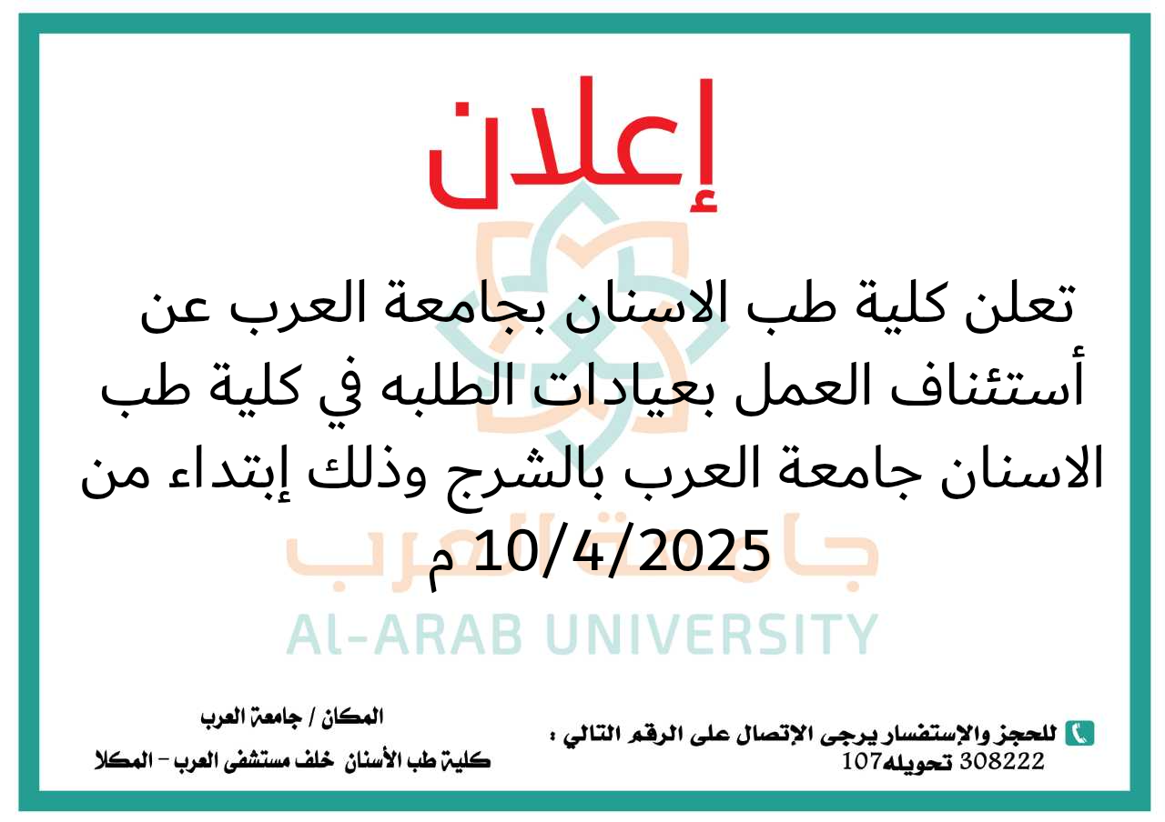 بعد مؤتمر سلامة المرضى، جامعة العرب تعلن عن مؤتمرها الأول في طب الأسنان